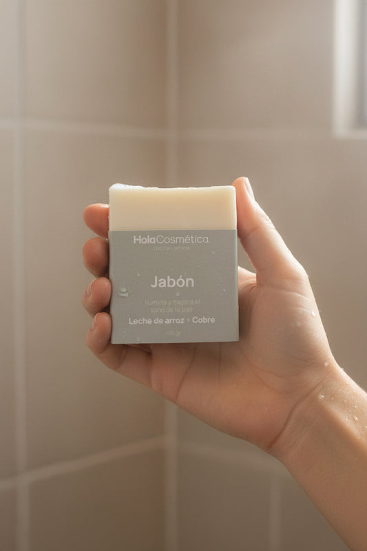 Jabón Natural en Barra de Leche de Arroz y Cobre - Cuidado Suave para Bebés y Adultos | Hola Cosmética
